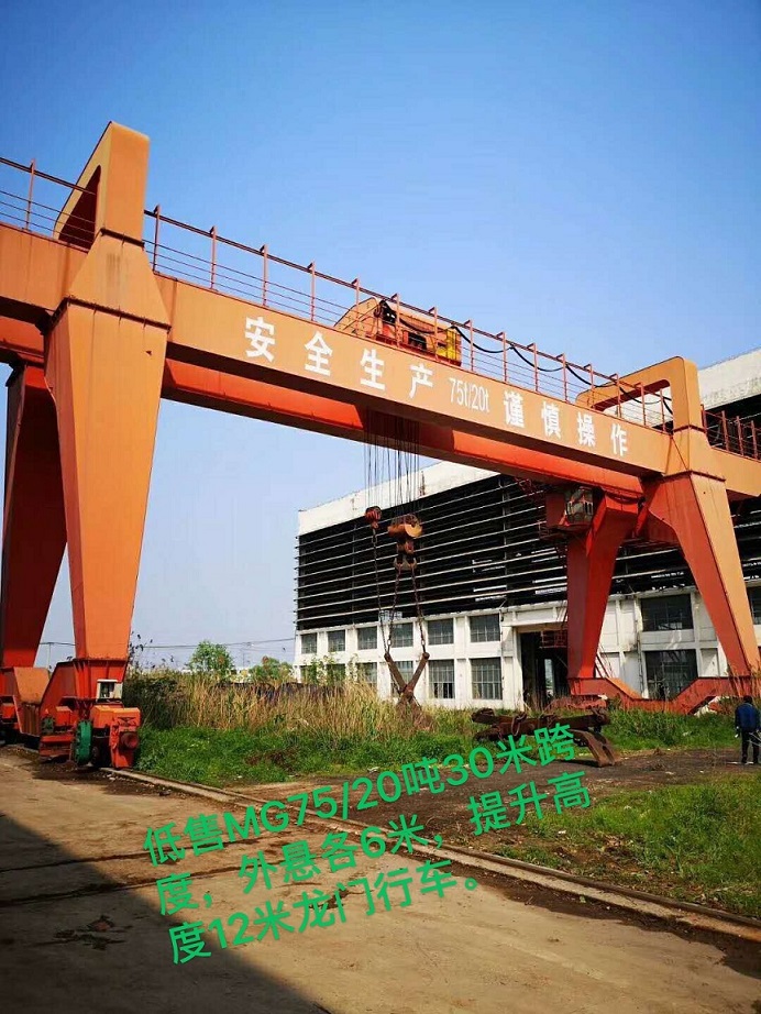 出售二手MG75/20吨30米跨度,外悬各6米升高12米龙门行车,欢迎选购.