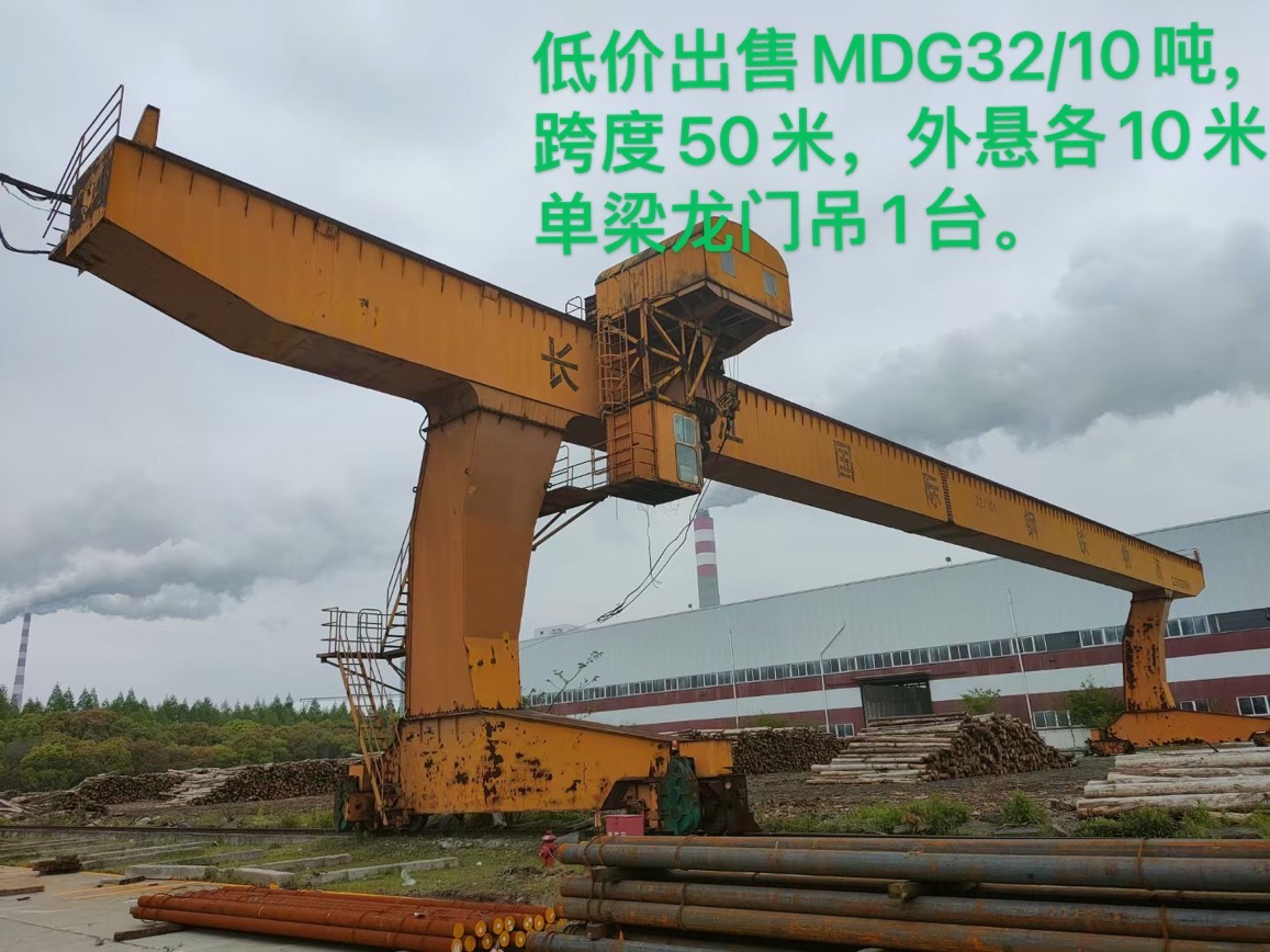 低价出售一台二手MDG32/10吨50米跨度外悬各10米升高10米双梁龙门行车,欢迎咨询选购。