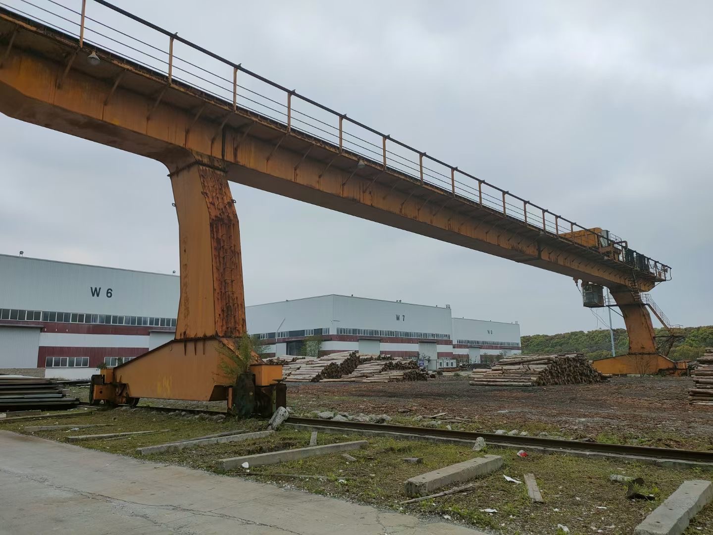 L型偏挂龙门吊32/10吨26米跨度,单悬8米,升高9米,在位八成新。