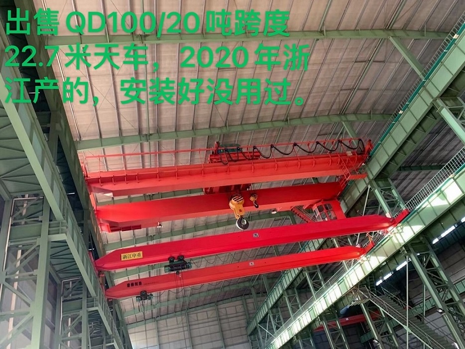 出售二手QD100/20吨22.70米跨度桥式行车,2020年浙江产的车,全新车安装上去未使用过,欢迎光临选购。
